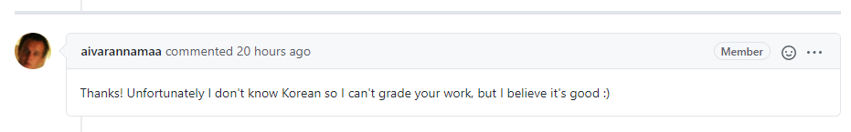 그리고 며칠 전에 다시 PR을 해달라고 comment를 달았더니...
